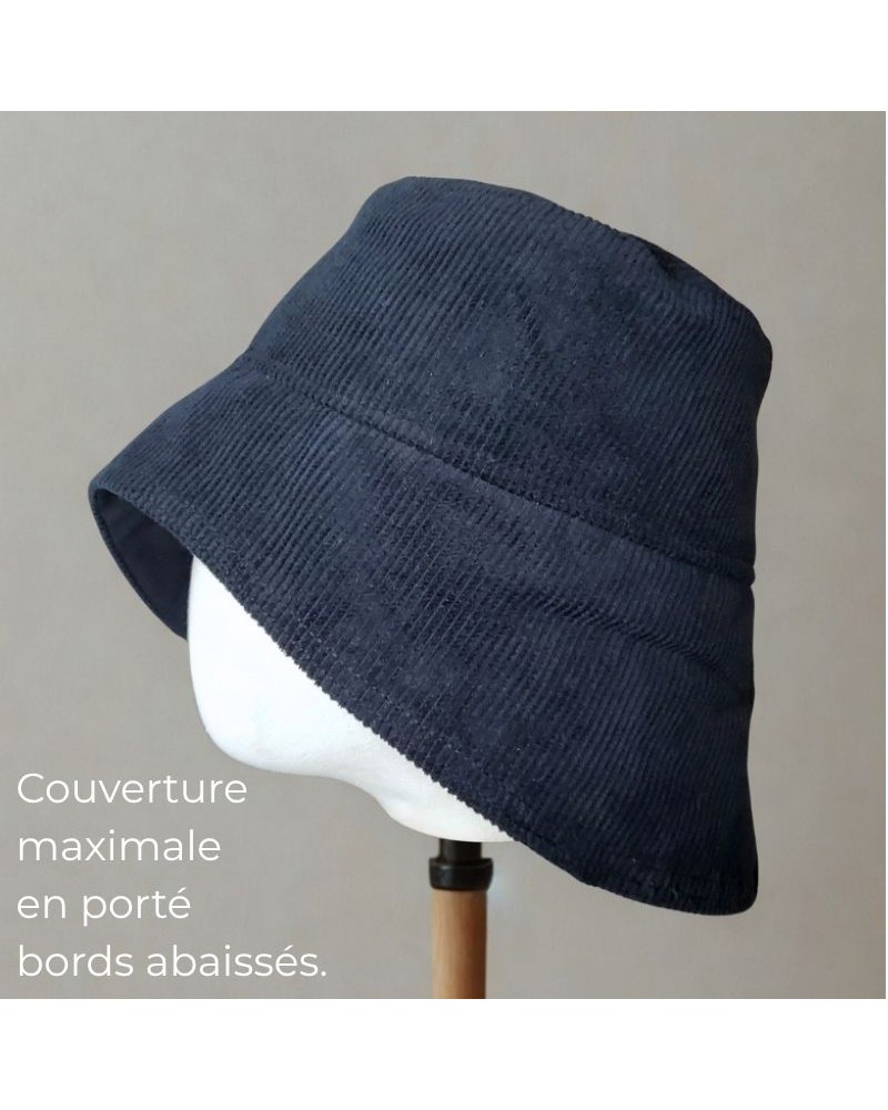 Ce chapeau anti-ondes électromagnétiques, anti-pluie et résistant aussi aux UV, est fabriqué entièrement "cousu-main" en France dans notre atelier.
